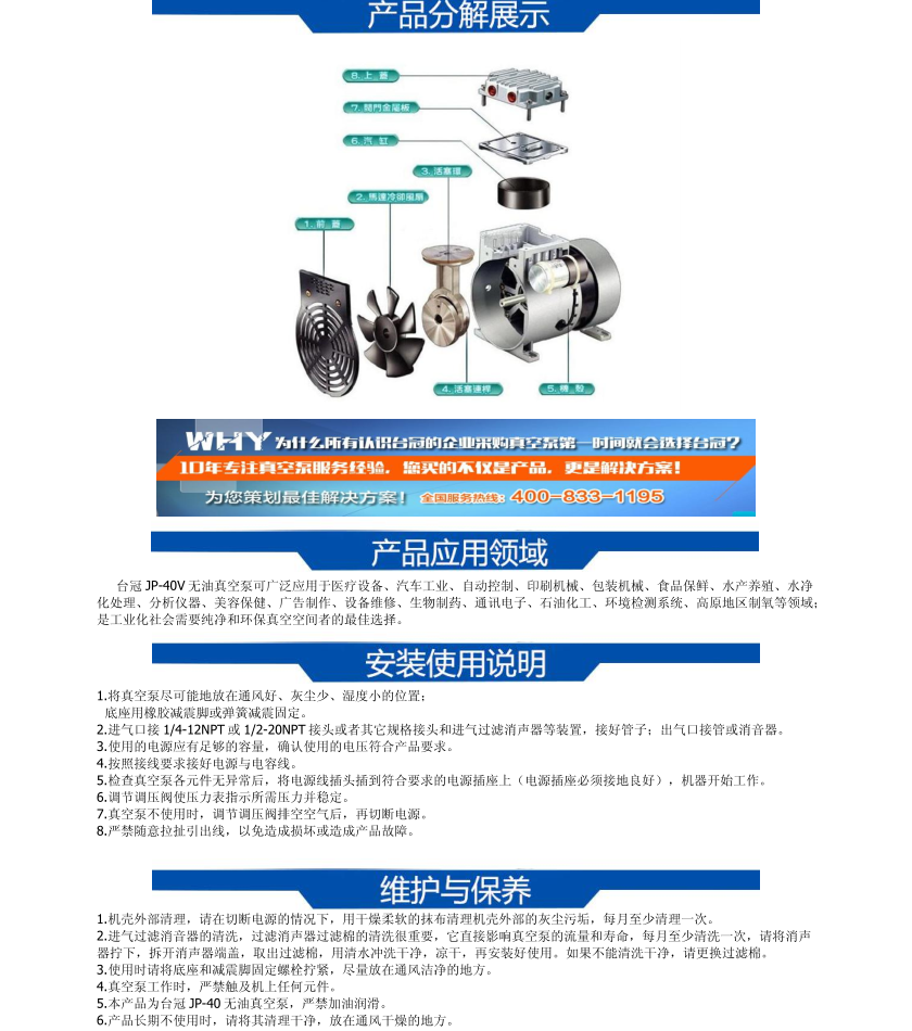 JP-40V臺(tái)冠無(wú)油真空泵
