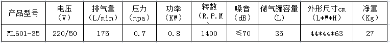 8.本產(chǎn)品為臺(tái)冠ML601-35無油空氣壓縮機(jī),嚴(yán)禁加油潤滑。