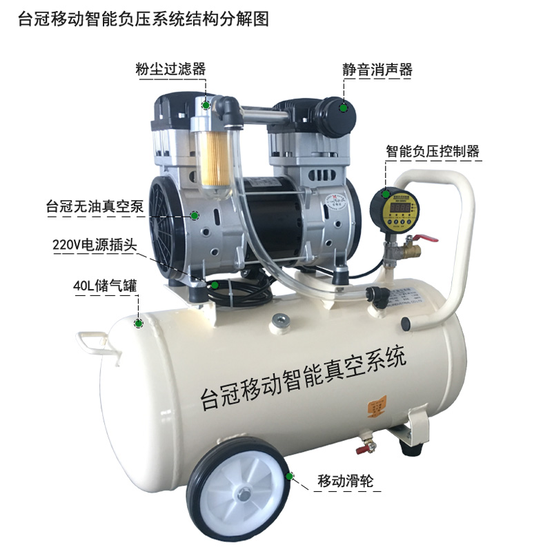 ②配有一個40L的加厚真空儲氣罐,真空度和流量達(dá)到穩(wěn)定性。